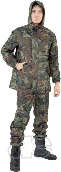 Костюм для охоты и рыбалки. Куртка с центральной застёжкой на "молнию" и ветрозащитным клапаном, притачным капюшоном.