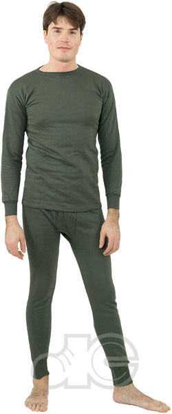 Фуфайка с круглой горловиной. Кальсоны на резинке. Низ рукавов и кальсон с трикотажным манжетами.