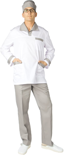 Блуза прямого силуэта с длинными рукавами. Модель выполнена с комбинированной отделкой воротника в форме «апаш» и накладными планками на карманах полочки. Для обеспечения свободы движения в низу изделия по боковым швам сделаны