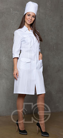 Халат с воротником – стойкой и отложными лацканами,