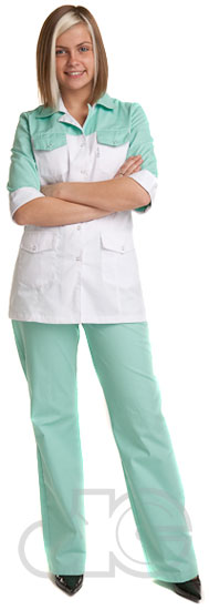 Блузон с отложным воротником и лацканами, центральной застёжкой на кнопки, полуприлегающего силуэта. Полочки и спинка с кокетками и рельефами. Верхние и нижние накладные карманы с клапанами. Низ рукавов с манжетами. На манжетах и клапанах карманов кнопки.
